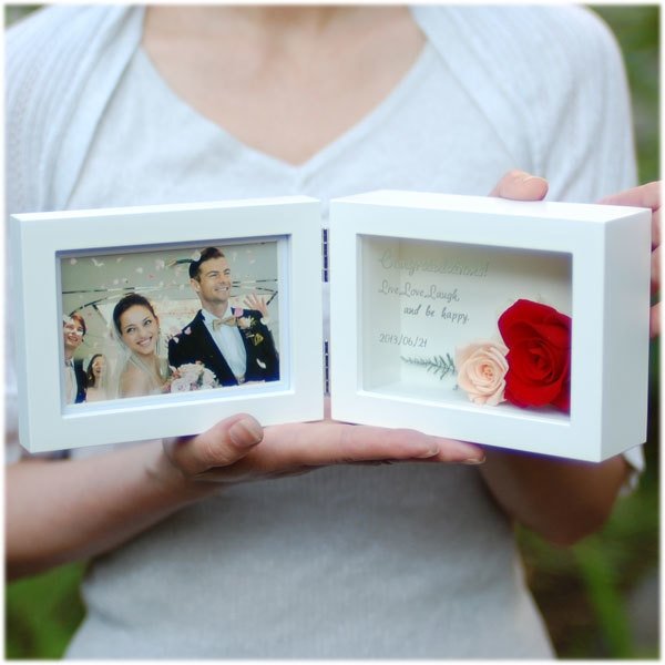 花器にメッセージや名入れを彫刻できる、プリザーブドフラワーギフトを販売しています。